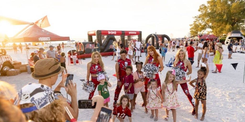 - 1:00 PM – 5:00 PM: Bucs Activity Zone – fun for all ages! Catch appearances from Bucs Mascot Captain Fear, Pirates and Street Team, plus contests, giveaways, inflatable games, and more! @Beachfront