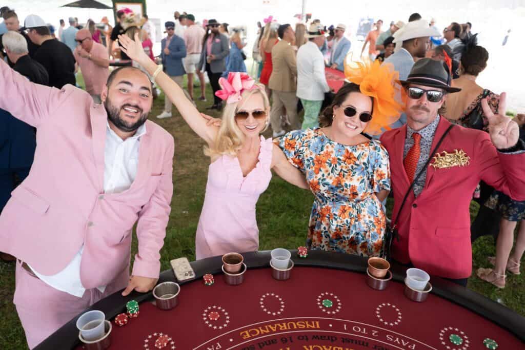 The Jockey Club is the must-have ticket every year, as the all-inclusive lounge provides an elevated experience with complimentary drinks for the duration of the event, plus one meal ticket to select something from the many vendors at the party. Space is limited and prices go up as the event gets closer.
